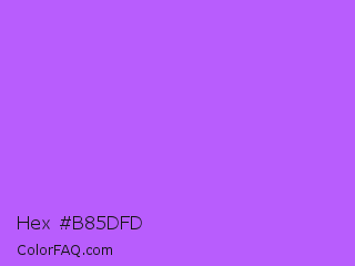 Hex #b85dfd Color is a light purple color and the nearest color is Navy Purple #9457eb. Hex code #b85dfd and RGB value is rgb(184,93,253). In RGB color space, this color is composed of 72% red, 36% green, 99% blue, In CMYK color space, this color is composed of 27% cyan, 63% magenta, 0% yellow , 1% black , In HSL color space, this color has a hue angle of 274° , 98% saturation and 68% lightness.