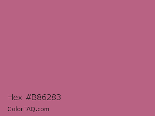 Hex #b86283 Color is a normal rose color and the nearest color is Tapestry #b05e81. Hex code #b86283 and RGB value is rgb(184,98,131). In RGB color space, this color is composed of 72% red, 38% green, 51% blue, In CMYK color space, this color is composed of 0% cyan, 47% magenta, 29% yellow , 28% black , In HSL color space, this color has a hue angle of 337° , 38% saturation and 55% lightness.