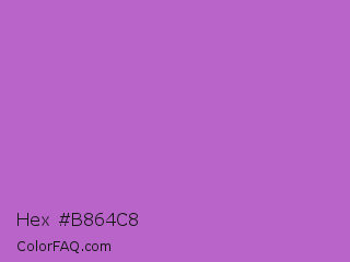 Hex #b864c8 Color is a normal purple color and the nearest color is Rich Lilac #b666d2. Hex code #b864c8 and RGB value is rgb(184,100,200). In RGB color space, this color is composed of 72% red, 39% green, 78% blue, In CMYK color space, this color is composed of 8% cyan, 50% magenta, 0% yellow , 22% black , In HSL color space, this color has a hue angle of 290° , 48% saturation and 59% lightness.