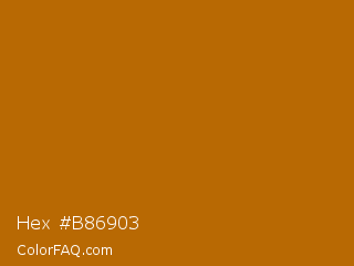 Hex #b86903 Color is a normal orange color and the nearest color is Ginger #b06500. Hex code #b86903 and RGB value is rgb(184,105,3). In RGB color space, this color is composed of 72% red, 41% green, 1% blue, In CMYK color space, this color is composed of 0% cyan, 43% magenta, 98% yellow , 28% black , In HSL color space, this color has a hue angle of 34° , 97% saturation and 37% lightness.