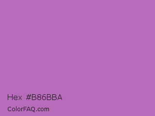 Hex #b86bba Color is a normal magenta color and the nearest color is Pearly Purple #b768a2. Hex code #b86bba and RGB value is rgb(184,107,186). In RGB color space, this color is composed of 72% red, 42% green, 73% blue, In CMYK color space, this color is composed of 1% cyan, 42% magenta, 0% yellow , 27% black , In HSL color space, this color has a hue angle of 298° , 36% saturation and 57% lightness.