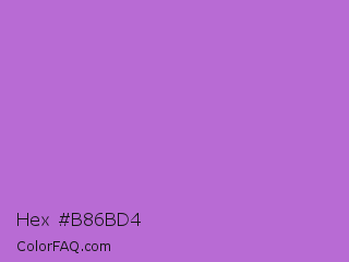 Hex #b86bd4 Color is a light purple color and the nearest color is Rich Lilac #b666d2. Hex code #b86bd4 and RGB value is rgb(184,107,212). In RGB color space, this color is composed of 72% red, 42% green, 83% blue, In CMYK color space, this color is composed of 13% cyan, 50% magenta, 0% yellow , 17% black , In HSL color space, this color has a hue angle of 284° , 55% saturation and 63% lightness.