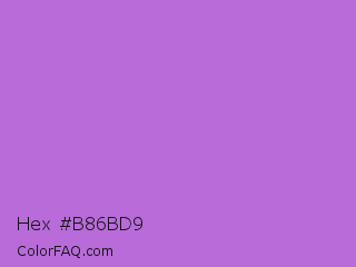 Hex #b86bd9 Color is a light purple color and the nearest color is Rich Lilac #b666d2. Hex code #b86bd9 and RGB value is rgb(184,107,217). In RGB color space, this color is composed of 72% red, 42% green, 85% blue, In CMYK color space, this color is composed of 15% cyan, 51% magenta, 0% yellow , 15% black , In HSL color space, this color has a hue angle of 282° , 59% saturation and 64% lightness.