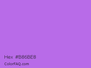 Hex #b86be8 Color is a light purple color and the nearest color is Rich Lilac #b666d2. Hex code #b86be8 and RGB value is rgb(184,107,232). In RGB color space, this color is composed of 72% red, 42% green, 91% blue, In CMYK color space, this color is composed of 21% cyan, 54% magenta, 0% yellow , 9% black , In HSL color space, this color has a hue angle of 277° , 73% saturation and 66% lightness.