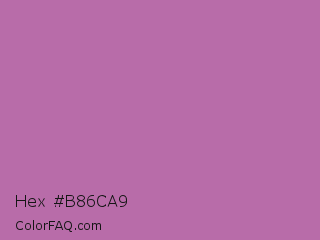 Hex #b86ca9 Color is a normal magenta color and the nearest color is Pearly Purple #b768a2. Hex code #b86ca9 and RGB value is rgb(184,108,169). In RGB color space, this color is composed of 72% red, 42% green, 66% blue, In CMYK color space, this color is composed of 0% cyan, 41% magenta, 8% yellow , 28% black , In HSL color space, this color has a hue angle of 312° , 35% saturation and 57% lightness.
