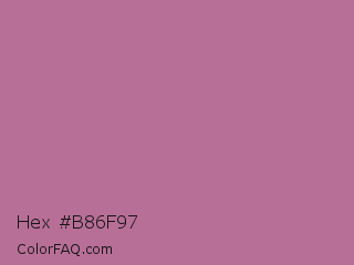 Hex #b86f97 Color is a normal magenta color and the nearest color is Pearly Purple #b768a2. Hex code #b86f97 and RGB value is rgb(184,111,151). In RGB color space, this color is composed of 72% red, 44% green, 59% blue, In CMYK color space, this color is composed of 0% cyan, 40% magenta, 18% yellow , 28% black , In HSL color space, this color has a hue angle of 327° , 34% saturation and 58% lightness.