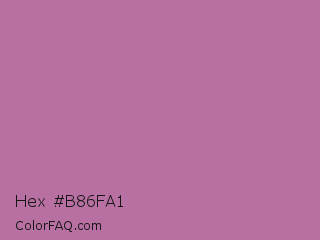 Hex #b86fa1 Color is a normal magenta color and the nearest color is Pearly Purple #b768a2. Hex code #b86fa1 and RGB value is rgb(184,111,161). In RGB color space, this color is composed of 72% red, 44% green, 63% blue, In CMYK color space, this color is composed of 0% cyan, 40% magenta, 13% yellow , 28% black , In HSL color space, this color has a hue angle of 319° , 34% saturation and 58% lightness.