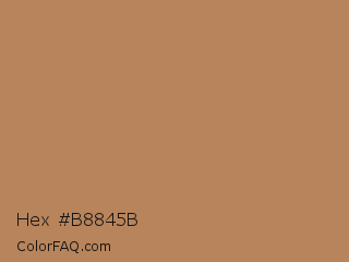 Hex #b8845b Color is a normal orange color and the nearest color is Deer #ba8759. Hex code #b8845b and RGB value is rgb(184,132,91). In RGB color space, this color is composed of 72% red, 52% green, 36% blue, In CMYK color space, this color is composed of 0% cyan, 28% magenta, 51% yellow , 28% black , In HSL color space, this color has a hue angle of 26° , 40% saturation and 54% lightness.