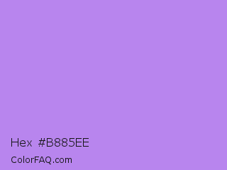Hex #b885ee Color is a light violet color and the nearest color is Bright Lavender #bf94e4. Hex code #b885ee and RGB value is rgb(184,133,238). In RGB color space, this color is composed of 72% red, 52% green, 93% blue, In CMYK color space, this color is composed of 23% cyan, 44% magenta, 0% yellow , 7% black , In HSL color space, this color has a hue angle of 269° , 76% saturation and 73% lightness.