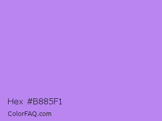 Hex #b885f1 Color is a light violet color and the nearest color is Bright Lavender #bf94e4. Hex code #b885f1 and RGB value is rgb(184,133,241). In RGB color space, this color is composed of 72% red, 52% green, 95% blue, In CMYK color space, this color is composed of 24% cyan, 45% magenta, 0% yellow , 5% black , In HSL color space, this color has a hue angle of 268° , 79% saturation and 73% lightness.