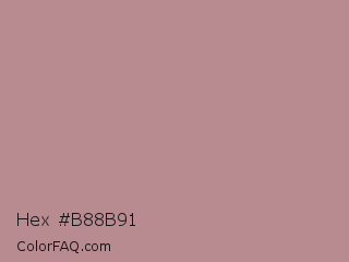 Hex #b88b91 Color is a light red color and the nearest color is Rosy Brown #bc8f8f. Hex code #b88b91 and RGB value is rgb(184,139,145). In RGB color space, this color is composed of 72% red, 55% green, 57% blue, In CMYK color space, this color is composed of 0% cyan, 24% magenta, 21% yellow , 28% black , In HSL color space, this color has a hue angle of 352° , 24% saturation and 63% lightness.