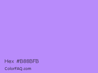 Hex #b88bfb Color is a light violet color and the nearest color is Pale Violet #cc99ff. Hex code #b88bfb and RGB value is rgb(184,139,251). In RGB color space, this color is composed of 72% red, 55% green, 98% blue, In CMYK color space, this color is composed of 27% cyan, 45% magenta, 0% yellow , 2% black , In HSL color space, this color has a hue angle of 264° , 93% saturation and 76% lightness.