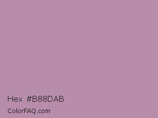 Hex #b88dab Color is a light magenta color and the nearest color is Opera Mauve #b784a7. Hex code #b88dab and RGB value is rgb(184,141,171). In RGB color space, this color is composed of 72% red, 55% green, 67% blue, In CMYK color space, this color is composed of 0% cyan, 23% magenta, 7% yellow , 28% black , In HSL color space, this color has a hue angle of 318° , 23% saturation and 64% lightness.