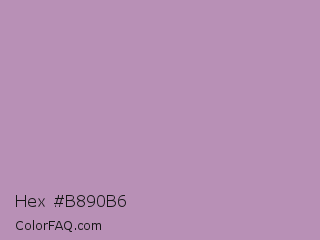 Hex #b890b6 Color is a light magenta color and the nearest color is Glossy Grape #ab92b3. Hex code #b890b6 and RGB value is rgb(184,144,182). In RGB color space, this color is composed of 72% red, 56% green, 71% blue, In CMYK color space, this color is composed of 0% cyan, 22% magenta, 1% yellow , 28% black , In HSL color space, this color has a hue angle of 303° , 22% saturation and 64% lightness.