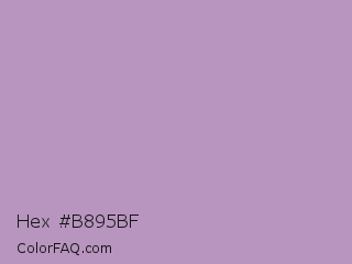 Hex #b895bf Color is a light purple color and the nearest color is Pastel Purple #b39eb5. Hex code #b895bf and RGB value is rgb(184,149,191). In RGB color space, this color is composed of 72% red, 58% green, 75% blue, In CMYK color space, this color is composed of 4% cyan, 22% magenta, 0% yellow , 25% black , In HSL color space, this color has a hue angle of 290° , 25% saturation and 67% lightness.
