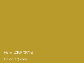 Hex #b89b2a Color is a normal yellow color and the nearest color is Marigold #b98d28. Hex code #b89b2a and RGB value is rgb(184,155,42). In RGB color space, this color is composed of 72% red, 61% green, 16% blue, In CMYK color space, this color is composed of 0% cyan, 16% magenta, 77% yellow , 28% black , In HSL color space, this color has a hue angle of 48° , 63% saturation and 44% lightness.