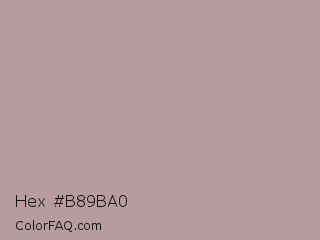 Hex #b89ba0 Color is a light red color and the nearest color is Thatch #b69d98. Hex code #b89ba0 and RGB value is rgb(184,155,160). In RGB color space, this color is composed of 72% red, 61% green, 63% blue, In CMYK color space, this color is composed of 0% cyan, 16% magenta, 13% yellow , 28% black , In HSL color space, this color has a hue angle of 350° , 17% saturation and 66% lightness.