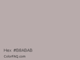 Hex #b8abab Color is a light red color and the nearest color is Silk #bdb1a8. Hex code #b8abab and RGB value is rgb(184,171,171). In RGB color space, this color is composed of 72% red, 67% green, 67% blue, In CMYK color space, this color is composed of 0% cyan, 7% magenta, 7% yellow , 28% black , In HSL color space, this color has a hue angle of 0° , 8% saturation and 70% lightness.
