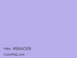 Hex #b8adeb Color is a light indigo color and the nearest color is Maximum Blue Purple #acace6. Hex code #b8adeb and RGB value is rgb(184,173,235). In RGB color space, this color is composed of 72% red, 68% green, 92% blue, In CMYK color space, this color is composed of 22% cyan, 26% magenta, 0% yellow , 8% black , In HSL color space, this color has a hue angle of 251° , 61% saturation and 80% lightness.