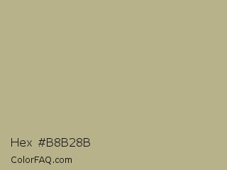 Hex #b8b28b Color is a light yellow color and the nearest color is Sage #bcb88a. Hex code #b8b28b and RGB value is rgb(184,178,139). In RGB color space, this color is composed of 72% red, 70% green, 55% blue, In CMYK color space, this color is composed of 0% cyan, 3% magenta, 24% yellow , 28% black , In HSL color space, this color has a hue angle of 52° , 24% saturation and 63% lightness.