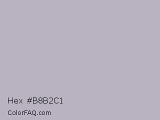 Hex #b8b2c1 Color is a light violet color and the nearest color is Chatelle #bdb3c7. Hex code #b8b2c1 and RGB value is rgb(184,178,193). In RGB color space, this color is composed of 72% red, 70% green, 76% blue, In CMYK color space, this color is composed of 5% cyan, 8% magenta, 0% yellow , 24% black , In HSL color space, this color has a hue angle of 264° , 11% saturation and 73% lightness.