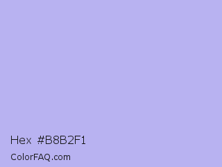 Hex #b8b2f1 Color is a very light indigo color and the nearest color is Maximum Blue Purple #acace6. Hex code #b8b2f1 and RGB value is rgb(184,178,241). In RGB color space, this color is composed of 72% red, 70% green, 95% blue, In CMYK color space, this color is composed of 24% cyan, 26% magenta, 0% yellow , 5% black , In HSL color space, this color has a hue angle of 246° , 69% saturation and 82% lightness.