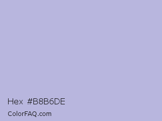 Hex #b8b6de Color is a light indigo color and the nearest color is Lavender Gray #bdbbd7. Hex code #b8b6de and RGB value is rgb(184,182,222). In RGB color space, this color is composed of 72% red, 71% green, 87% blue, In CMYK color space, this color is composed of 17% cyan, 18% magenta, 0% yellow , 13% black , In HSL color space, this color has a hue angle of 243° , 38% saturation and 79% lightness.