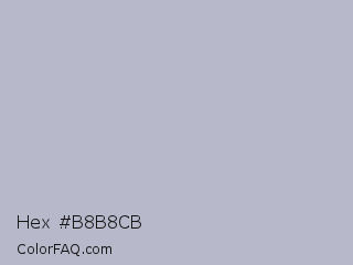 Hex #b8b8cb Color is a light blue color and the nearest color is Chatelle #bdb3c7. Hex code #b8b8cb and RGB value is rgb(184,184,203). In RGB color space, this color is composed of 72% red, 72% green, 80% blue, In CMYK color space, this color is composed of 9% cyan, 9% magenta, 0% yellow , 20% black , In HSL color space, this color has a hue angle of 240° , 15% saturation and 76% lightness.