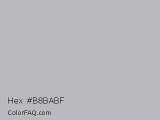 Hex #b8babf Color is a light blue color and the nearest color is Gray X11 Gray #bebebe. Hex code #b8babf and RGB value is rgb(184,186,191). In RGB color space, this color is composed of 72% red, 73% green, 75% blue, In CMYK color space, this color is composed of 4% cyan, 3% magenta, 0% yellow , 25% black , In HSL color space, this color has a hue angle of 223° , 5% saturation and 74% lightness.