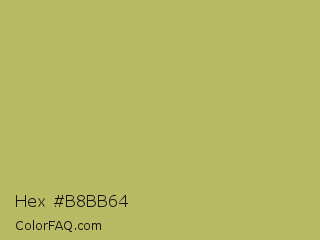 Hex #b8bb64 Color is a normal yellow color and the nearest color is Gimblet #b8b56a. Hex code #b8bb64 and RGB value is rgb(184,187,100). In RGB color space, this color is composed of 72% red, 73% green, 39% blue, In CMYK color space, this color is composed of 2% cyan, 0% magenta, 47% yellow , 27% black , In HSL color space, this color has a hue angle of 62° , 39% saturation and 56% lightness.