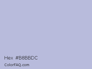 Hex #b8bbdc Color is a light blue color and the nearest color is Lavender Gray #bdbbd7. Hex code #b8bbdc and RGB value is rgb(184,187,220). In RGB color space, this color is composed of 72% red, 73% green, 86% blue, In CMYK color space, this color is composed of 16% cyan, 15% magenta, 0% yellow , 14% black , In HSL color space, this color has a hue angle of 235° , 34% saturation and 79% lightness.