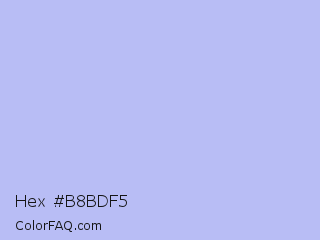 Hex #b8bdf5 Color is a very light blue color and the nearest color is Perano #a9bef2. Hex code #b8bdf5 and RGB value is rgb(184,189,245). In RGB color space, this color is composed of 72% red, 74% green, 96% blue, In CMYK color space, this color is composed of 25% cyan, 23% magenta, 0% yellow , 4% black , In HSL color space, this color has a hue angle of 235° , 75% saturation and 84% lightness.