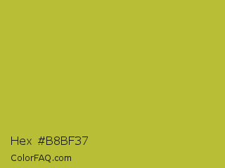 Hex #b8bf37 Color is a normal yellow color and the nearest color is Earls Green #c9b93b. Hex code #b8bf37 and RGB value is rgb(184,191,55). In RGB color space, this color is composed of 72% red, 75% green, 22% blue, In CMYK color space, this color is composed of 4% cyan, 0% magenta, 71% yellow , 25% black , In HSL color space, this color has a hue angle of 63° , 55% saturation and 48% lightness.