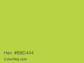 Hex #b8d444 Color is a normal lime color and the nearest color is Conifer #acdd4d. Hex code #b8d444 and RGB value is rgb(184,212,68). In RGB color space, this color is composed of 72% red, 83% green, 27% blue, In CMYK color space, this color is composed of 13% cyan, 0% magenta, 68% yellow , 17% black , In HSL color space, this color has a hue angle of 72° , 63% saturation and 55% lightness.