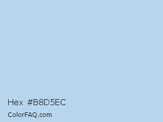 Hex #b8d5ec Color is a very light blue color and the nearest color is Spindle #b6d1ea. Hex code #b8d5ec and RGB value is rgb(184,213,236). In RGB color space, this color is composed of 72% red, 84% green, 93% blue, In CMYK color space, this color is composed of 22% cyan, 10% magenta, 0% yellow , 7% black , In HSL color space, this color has a hue angle of 207° , 58% saturation and 82% lightness.