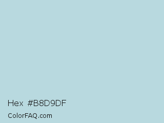 Hex #b8d9df Color is a light cyan color and the nearest color is Ziggurat #bfdbe2. Hex code #b8d9df and RGB value is rgb(184,217,223). In RGB color space, this color is composed of 72% red, 85% green, 87% blue, In CMYK color space, this color is composed of 17% cyan, 3% magenta, 0% yellow , 13% black , In HSL color space, this color has a hue angle of 189° , 38% saturation and 80% lightness.