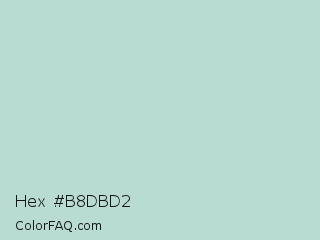 Hex #b8dbd2 Color is a light cyan color and the nearest color is Jet Stream #b5d2ce. Hex code #b8dbd2 and RGB value is rgb(184,219,210). In RGB color space, this color is composed of 72% red, 86% green, 82% blue, In CMYK color space, this color is composed of 16% cyan, 0% magenta, 4% yellow , 14% black , In HSL color space, this color has a hue angle of 165° , 33% saturation and 79% lightness.