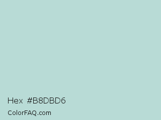 Hex #b8dbd6 Color is a light cyan color and the nearest color is Jet Stream #b5d2ce. Hex code #b8dbd6 and RGB value is rgb(184,219,214). In RGB color space, this color is composed of 72% red, 86% green, 84% blue, In CMYK color space, this color is composed of 16% cyan, 0% magenta, 2% yellow , 14% black , In HSL color space, this color has a hue angle of 171° , 33% saturation and 79% lightness.