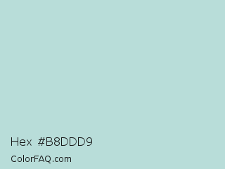 Hex #b8ddd9 Color is a light cyan color and the nearest color is Ziggurat #bfdbe2. Hex code #b8ddd9 and RGB value is rgb(184,221,217). In RGB color space, this color is composed of 72% red, 87% green, 85% blue, In CMYK color space, this color is composed of 17% cyan, 0% magenta, 2% yellow , 13% black , In HSL color space, this color has a hue angle of 174° , 35% saturation and 79% lightness.