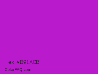 Hex #b91acb Color is a normal magenta color and the nearest color is Vivid Mulberry #b80ce3. Hex code #b91acb and RGB value is rgb(185,26,203). In RGB color space, this color is composed of 73% red, 10% green, 80% blue, In CMYK color space, this color is composed of 9% cyan, 87% magenta, 0% yellow , 20% black , In HSL color space, this color has a hue angle of 294° , 77% saturation and 45% lightness.