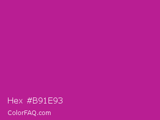 Hex #b91e93 Color is a normal magenta color and the nearest color is Red Violet #c71585. Hex code #b91e93 and RGB value is rgb(185,30,147). In RGB color space, this color is composed of 73% red, 12% green, 58% blue, In CMYK color space, this color is composed of 0% cyan, 84% magenta, 21% yellow , 27% black , In HSL color space, this color has a hue angle of 315° , 72% saturation and 42% lightness.