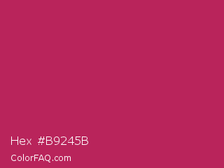 Hex #b9245b Color is a normal rose color and the nearest color is Rose Red #c21e56. Hex code #b9245b and RGB value is rgb(185,36,91). In RGB color space, this color is composed of 73% red, 14% green, 36% blue, In CMYK color space, this color is composed of 0% cyan, 81% magenta, 51% yellow , 27% black , In HSL color space, this color has a hue angle of 338° , 67% saturation and 43% lightness.