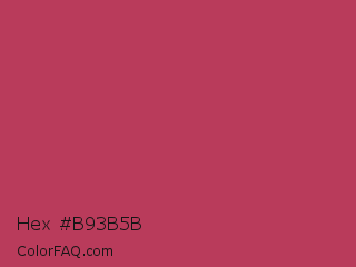 Hex #b93b5b Color is a normal red color and the nearest color is Rich Maroon #b03060. Hex code #b93b5b and RGB value is rgb(185,59,91). In RGB color space, this color is composed of 73% red, 23% green, 36% blue, In CMYK color space, this color is composed of 0% cyan, 68% magenta, 51% yellow , 27% black , In HSL color space, this color has a hue angle of 345° , 52% saturation and 48% lightness.