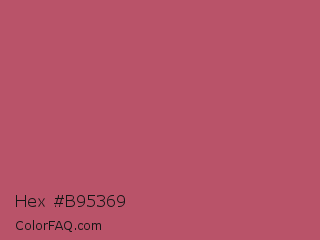 Hex #b95369 Color is a normal red color and the nearest color is Popstar #be4f62. Hex code #b95369 and RGB value is rgb(185,83,105). In RGB color space, this color is composed of 73% red, 33% green, 41% blue, In CMYK color space, this color is composed of 0% cyan, 55% magenta, 43% yellow , 27% black , In HSL color space, this color has a hue angle of 347° , 42% saturation and 53% lightness.