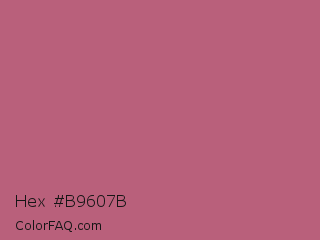 Hex #b9607b Color is a normal rose color and the nearest color is Tapestry #b05e81. Hex code #b9607b and RGB value is rgb(185,96,123). In RGB color space, this color is composed of 73% red, 38% green, 48% blue, In CMYK color space, this color is composed of 0% cyan, 48% magenta, 34% yellow , 27% black , In HSL color space, this color has a hue angle of 342° , 39% saturation and 55% lightness.