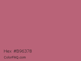 Hex #b96378 Color is a normal red color and the nearest color is Rose Gold #b76e79. Hex code #b96378 and RGB value is rgb(185,99,120). In RGB color space, this color is composed of 73% red, 39% green, 47% blue, In CMYK color space, this color is composed of 0% cyan, 46% magenta, 35% yellow , 27% black , In HSL color space, this color has a hue angle of 345° , 38% saturation and 56% lightness.