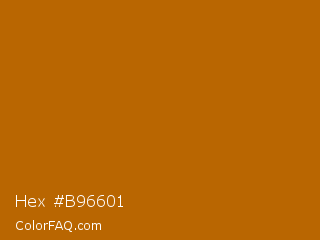Hex #b96601 Color is a normal orange color and the nearest color is Ginger #b06500. Hex code #b96601 and RGB value is rgb(185,102,1). In RGB color space, this color is composed of 73% red, 40% green, 0% blue, In CMYK color space, this color is composed of 0% cyan, 45% magenta, 99% yellow , 27% black , In HSL color space, this color has a hue angle of 33° , 99% saturation and 36% lightness.