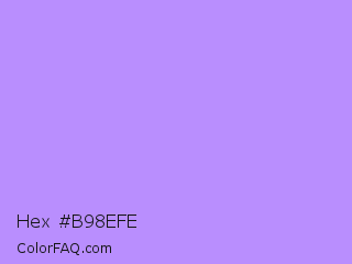Hex #b98efe Color is a light violet color and the nearest color is Pale Violet #cc99ff. Hex code #b98efe and RGB value is rgb(185,142,254). In RGB color space, this color is composed of 73% red, 56% green, 100% blue, In CMYK color space, this color is composed of 27% cyan, 44% magenta, 0% yellow , 0% black , In HSL color space, this color has a hue angle of 263° , 98% saturation and 78% lightness.