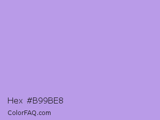 Hex #b99be8 Color is a light violet color and the nearest color is Biloba Flower #b2a1ea. Hex code #b99be8 and RGB value is rgb(185,155,232). In RGB color space, this color is composed of 73% red, 61% green, 91% blue, In CMYK color space, this color is composed of 20% cyan, 33% magenta, 0% yellow , 9% black , In HSL color space, this color has a hue angle of 263° , 63% saturation and 76% lightness.