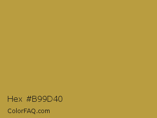 Hex #b99d40 Color is a normal yellow color and the nearest color is Brass #b5a642. Hex code #b99d40 and RGB value is rgb(185,157,64). In RGB color space, this color is composed of 73% red, 62% green, 25% blue, In CMYK color space, this color is composed of 0% cyan, 15% magenta, 65% yellow , 27% black , In HSL color space, this color has a hue angle of 46° , 49% saturation and 49% lightness.